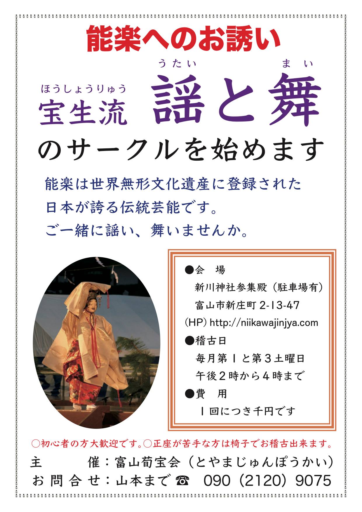 【能楽へのお誘い】宝生流 謡と舞 サークル応募要項 こちらからご覧いただけます」