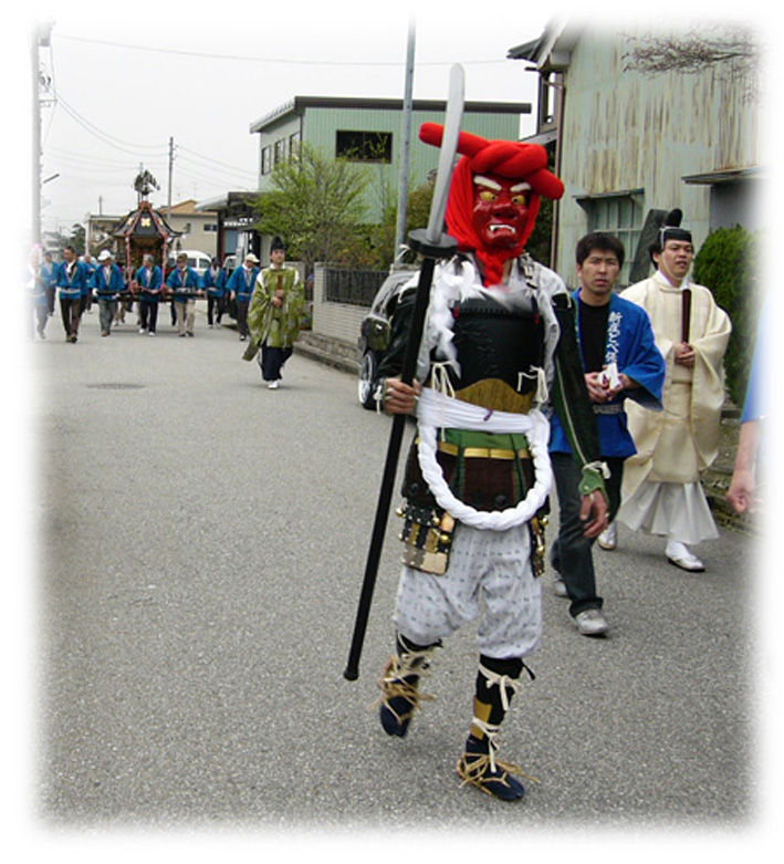 また、毎年4月19日に斎行される春祭には神輿渡御があり、その先導役として新庄では「