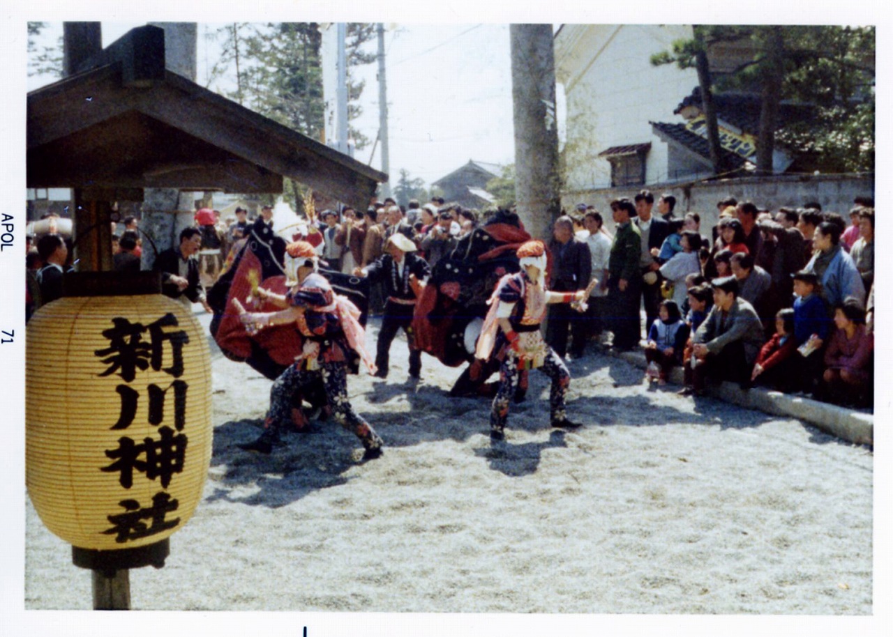 古来より新川一郡の総社でありますので、新庄に鎮座以来も近郷の住民が春秋の祭礼には集い賑わいました。また社殿の修理の節には旧例により旧の島郷の郷民である向新庄村、荒川村の新庄三カ村はもちろんですが元の社地に近かった広田・針原の両郷からもお手伝いされ、多いに社頭を盛り立ててこられました。