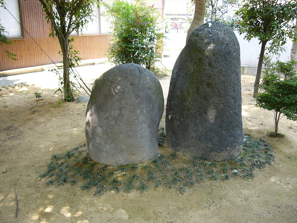 新川神社の境内にも新庄地内(大日社の境内のものか?)にあった巨石を参拝者の椅子として運ばれた物があったが、平成17年の境内整備工事の時に「夫婦円満夫婦石」として地中に並べて安置した。