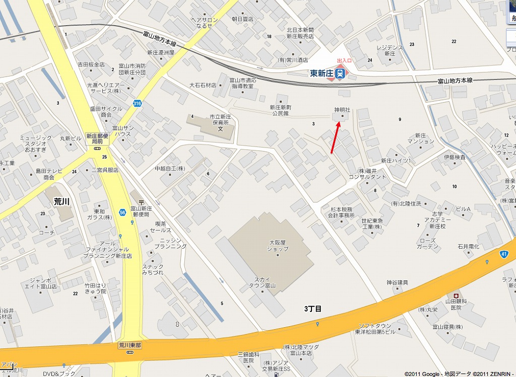 創建は天授2年(1376)創建。橋宮神明社とも称される。長慶天皇の御代、天授2年丙辰の5月16日、境内より天照大神、豊受大神の二尊体が発掘したので神意を受けて社殿を造営し御神体を奉斎した。それより創建の御縁日として毎年5月16日に祭礼を行ってきた。新庄城主三輪飛騨守長職御崇敬篤く、神領神器を奉納、ついで轡田備後守も城主に成るや等しく崇敬した。
