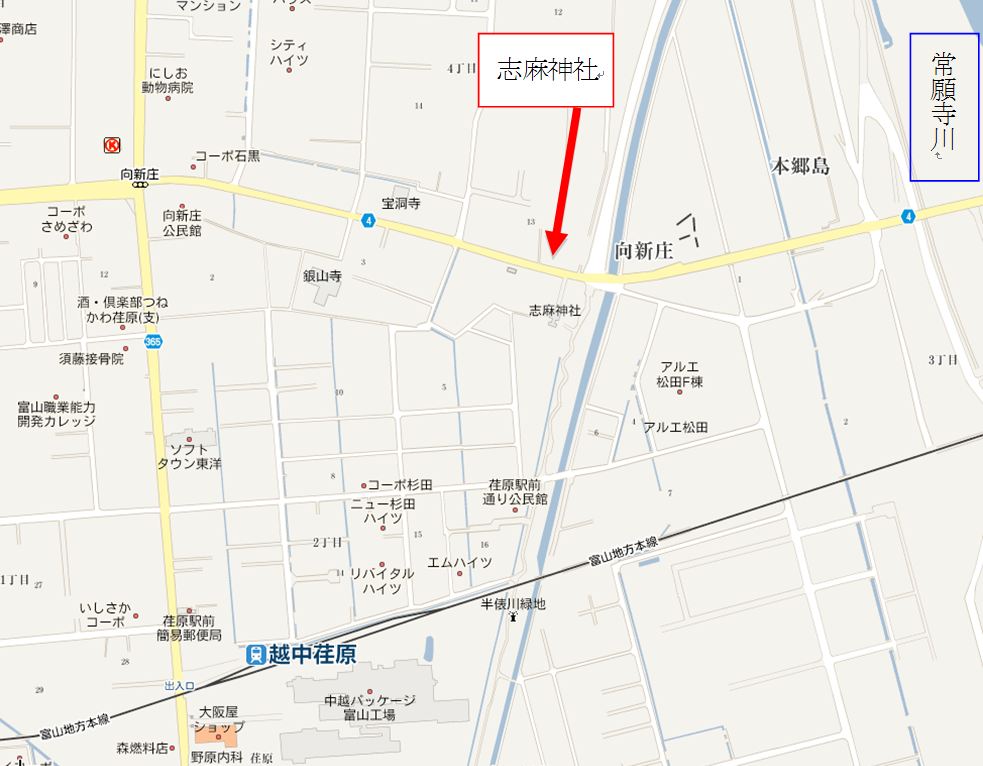 - 主神 白山比咩命(白山社)元、島村大字向新庄村字彦宗割22番地鎮座