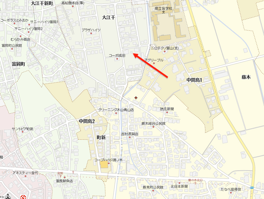 「大江干(オホエボシ)」、此村先年向新庄領之内大江干ト申ス所に村立テ出来ニ付キ即チ村名ニ昌エ申ス由申シ伝エ候」とある。