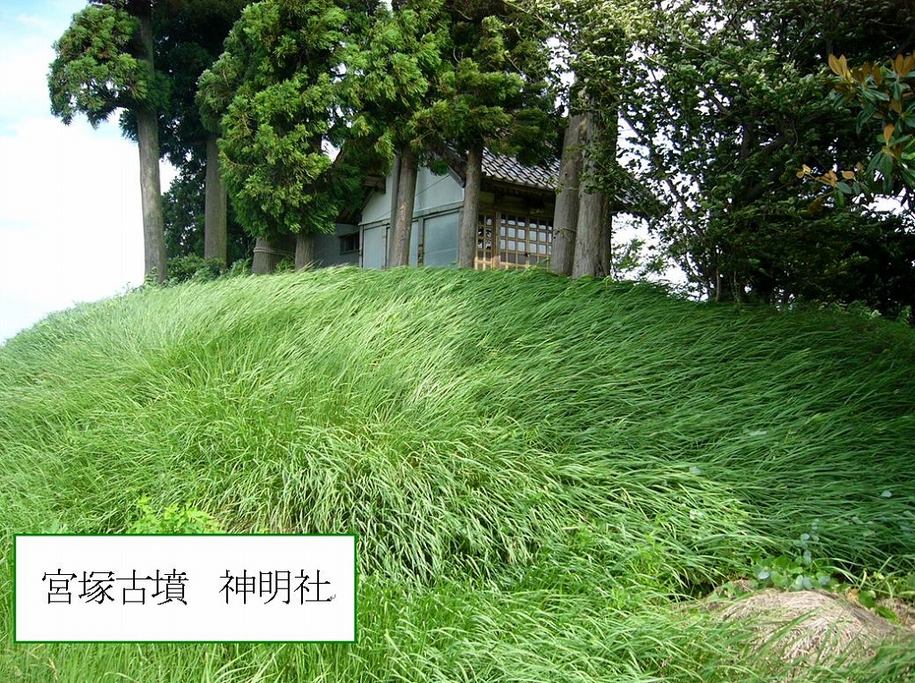 この古墳は、白岩川(しらいわがわ)中流右岸にある県内最大級の円墳(直径46m)で、この西約40mには宮塚古墳があります。南側にも直径11mの円墳がかつてありました。