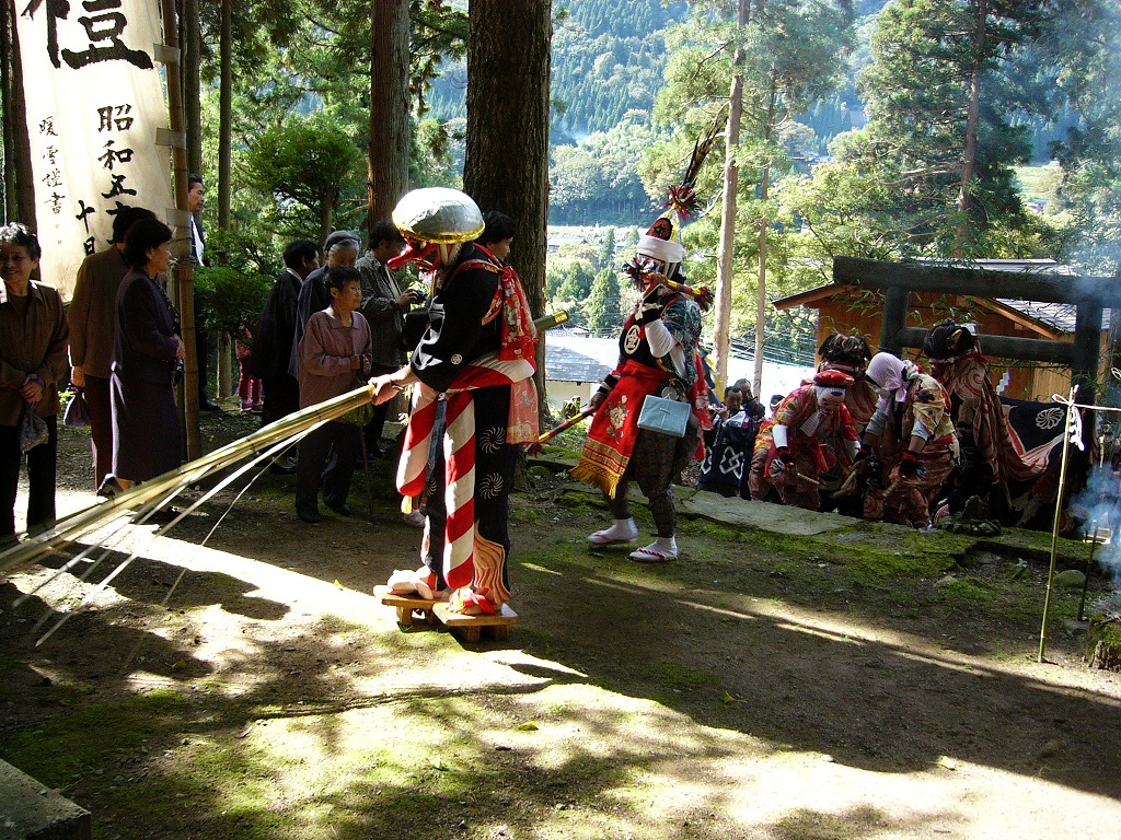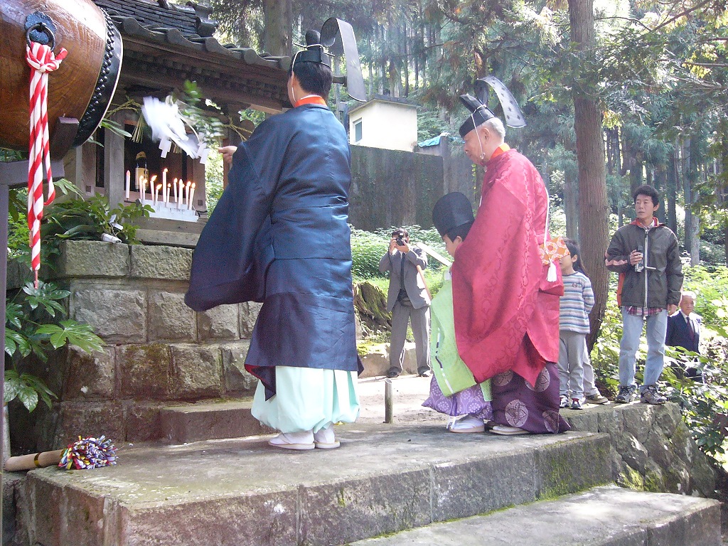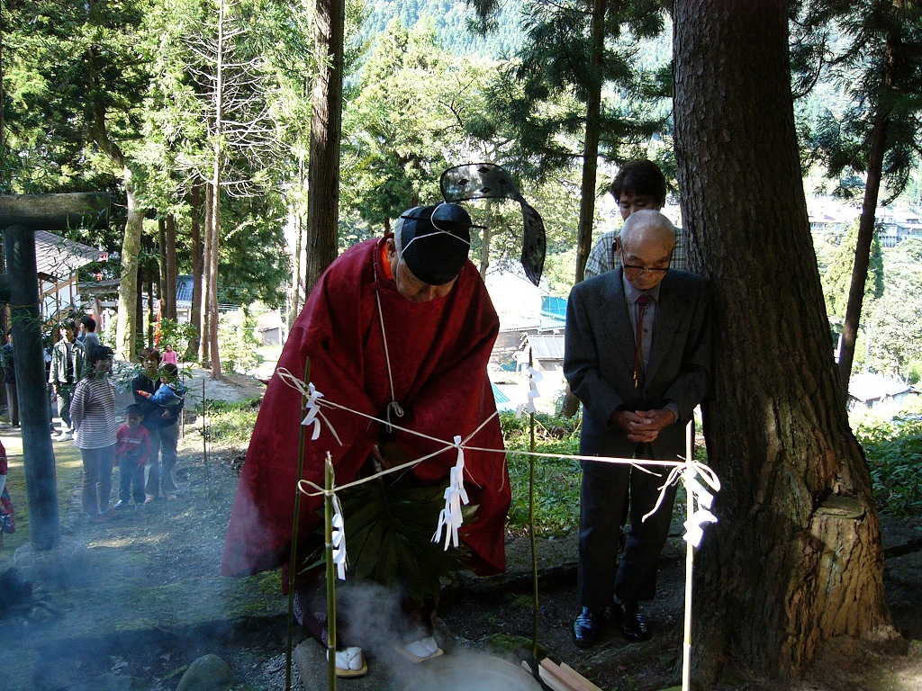いつの時代も変わらないのは子孫繁栄と夫婦円満を願う心で、境内に小さいながらも男根崇拝の物が祀ってある。東猪谷、小糸と同じく湯釜神事がある。