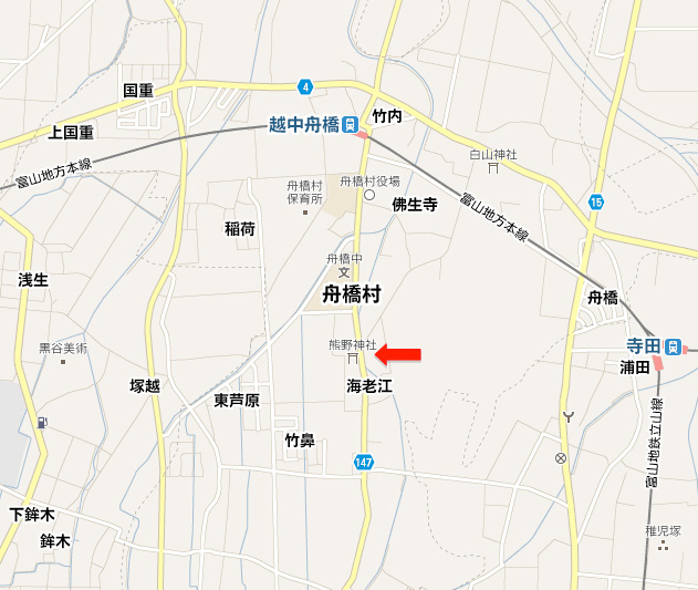 伊邪那岐命は勧請年月日は不詳なるも古来よりこの地に鎮座まします村社・熊野神社の祭神なり。天照大御神も勧請年月日は不詳なるも古来より近隣の竹鼻に鎮座まします村社・神明社の祭神なり。竹鼻の神明社が維持困難につき、村社・熊野神社に合併の為、昭和4年3月許可を得て4月11日合祀祭斎行す。