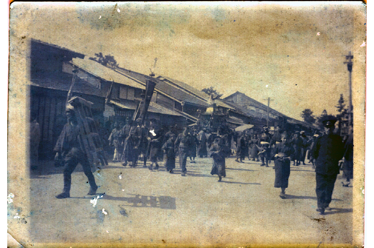 この写真は明治32年(1899)現在でもはるまつりにつかっているおみこしが新しくなったときのはるまつりの写真です。