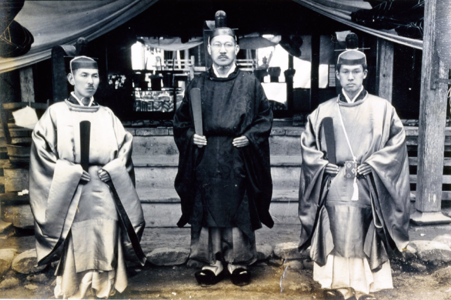 写真に写っている宮司は舩木卓雄。現在の舩木信孝宮司のひいおじいさんです。