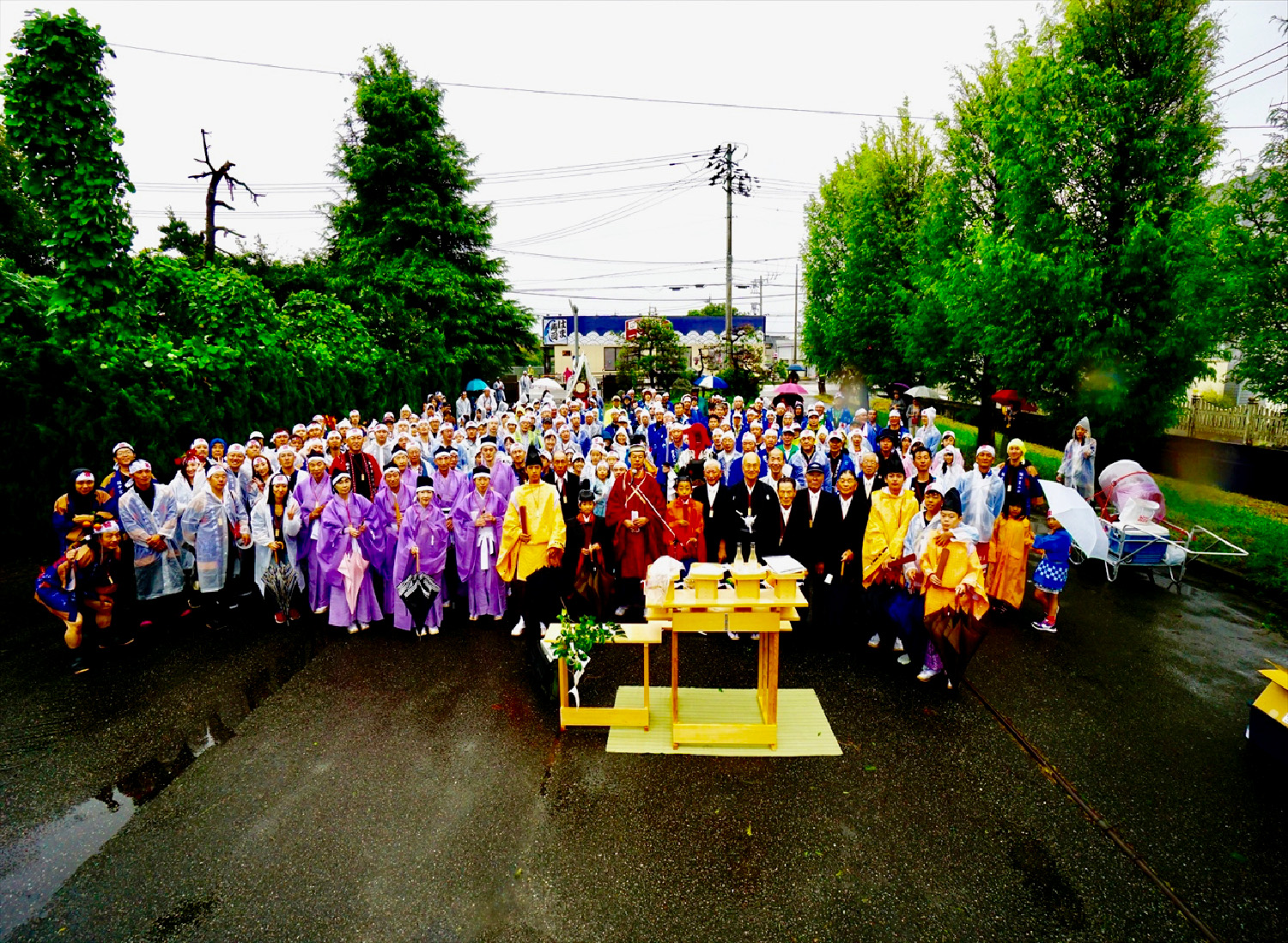 昭和15年9月1日、新庄町は富山市に編入されることになり、最後の春祭りということで特別(とくべつ)に新庄町の代表の役人が神様におそなえものをする春祭をおこなったときの写真です。
