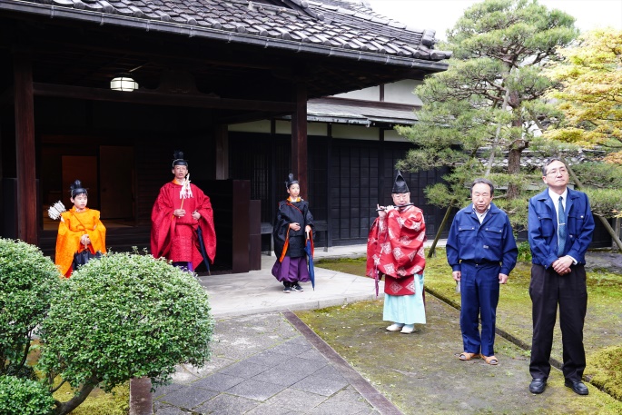 そのあと、だいひょうしゃが榊の木の枝におもいをこめて神さまにささげ、おいのりしてから出発(しゅっぱつ)のぎしきにうつります。