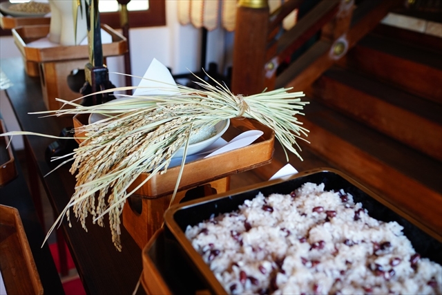 新嘗祭(にいなめさい)の起源(きげん)はたいへんふるく、『古事記(こじき)』にも天照大御神(あまてらすおおみかみ)が新嘗祭(にいなめさい)をおこなったことがしるされています。神さまもお米をつくられるんですね。